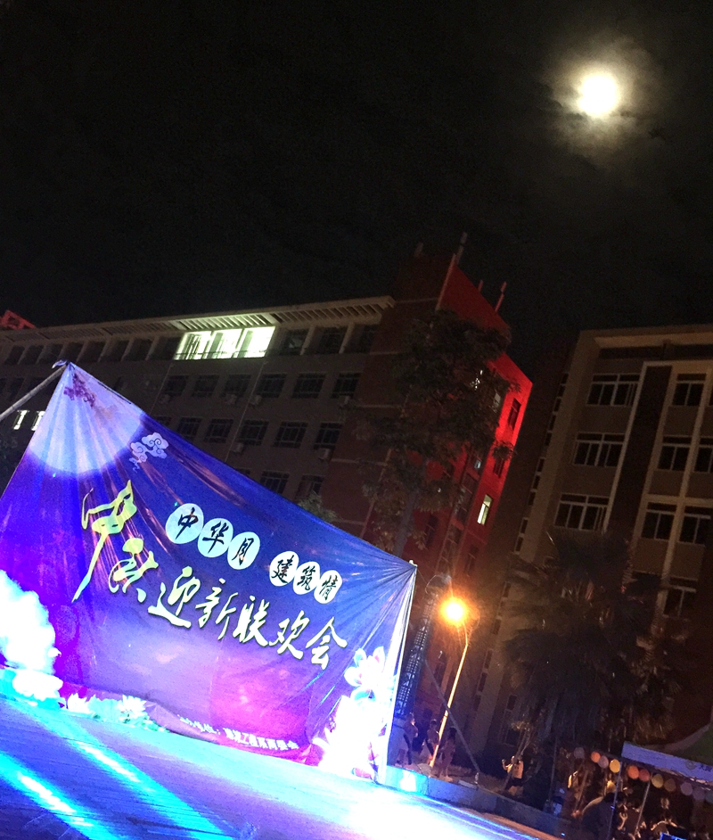 本网讯 为与2015级新生同庆中秋佳节暨纪念反法西斯战争胜利70周年, 9月24日(农历八月十二)晚7点30分,建筑工程系“中华月、建筑情”迎新中秋联欢会在江南校区人工湖举行。学院副院长王振亮,院长助理郭先根,建筑工程系党总支副书记王云彪,建筑工程系辅导员、教师及2015级全体新生400余人观看了本次晚会。