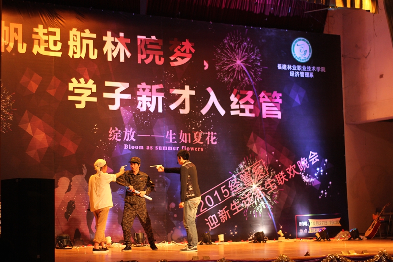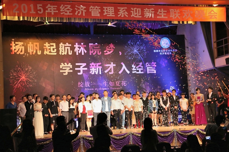 本网讯 2015年10月27日晚上7点,由经济管理系团总支主办的2015年迎新生联欢晚会在学院天麟校区礼堂隆重举行。学院副院长王振亮、招生就业办公室主任黄丽霞、继续教育中心主任方栋龙、党委办公室副主任邹小燕、学生处副处长谢福荣、纪检监察室副主任张毅、团委副书记李霞、经济管理系党政领导及全体师生观看了晚会。