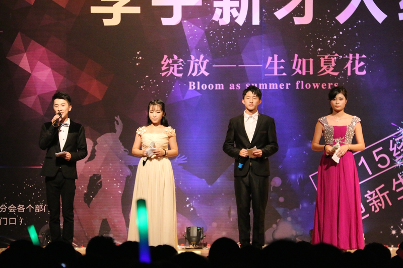 晚会现场光芒闪耀,节目精彩纷呈。激情的乐队拉开了晚会序幕,激昂的音乐、灵动的舞步、欢快的节奏、台下飞舞的荧光棒、热烈的掌声,瞬间就点燃了现场的气氛。靓丽青春、优美动人的街舞《爸爸去哪儿》、《破晓》为大家带来别有韵味的现代大学生朝气蓬勃的面貌;俏皮灵动、深情意长的歌曲《童声联唱》、《一生有你》、《我的未来不是梦》等用歌声诉说着对来自五湖四海的同学的深情;惊险刺激的魔术表演更是把晚会推向高潮;当袅袅的《梁祝》钢琴声淡淡的划过舞台,听着《这一天》时而铿锵有力、时而激荡起伏、时而如风细雨缠绵的朗诵,这一切深深地触动着在场每一位观众的灵魂;青春时尚、炫目夺彩的模特走秀,劲爆有力的爵士舞,昭示着大学生的年轻与活力、激情与梦想;小品《智斗鬼子》、《爸爸驾到》幽默诙谐的语言更是引得全场捧腹……最后,晚会在满载祝福的歌曲《爱,因为在心中》的歌声中,炫彩落幕。