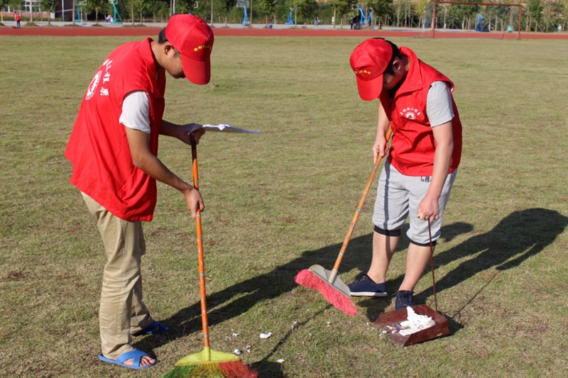 在校运会热烈开展的同时,环境美化也十分重要。福建林业职业技术学院自动化工程系青年志愿者协会以“我奉献,我快乐”为主题,组织成员对操场进行清扫,通过运动会的清扫可以提高大家的环保意识,给运动员和同学们营造一个良好的比赛环境,让大家在一个干净、美丽的校园环境中尽情的享受运动会的激情,同时发扬志愿者“奉献、友爱、互助、进步”的志愿服务精神。