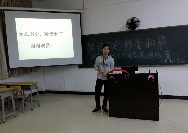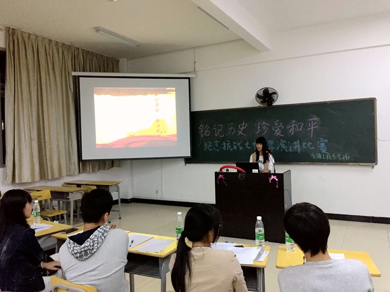 本网讯 为纪念中国人民抗日战争暨世界反法西斯战争胜利70周年,激发大学生群体的爱国热情。11月24日晚7:30,交通工程系“铭记历史,珍爱和平”纪念抗战胜利70周年演讲比赛在江南校区顺利举行。