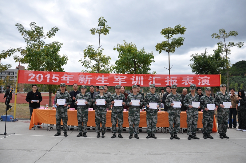 本网讯 多彩军训,青春无悔。12月11日上午十点,福建林业职业技术学院2015级学生军训汇报表演在江南校区举行。学院院长助理郭先根、林学系党总支书记吴奇镇、艺术设计系主任成榕、建筑工程系党总支副书记王云彪、经济管理系党总支副书记俞雄辉、自动化工程系党总支副书记范有福、园林系党总支副书记陈剑勇、交通系学生科科长薛莉,以及2015级全体新生辅导员、军训带训教官和参训新生参加了大会。汇报会由学生处副处长谢福荣老师主持。