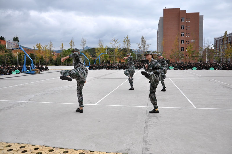 军训汇报表演后,复学退伍军人带来了擒敌拳和少林齐眉棍2个精彩节目。他们动作整齐划一,铿锵有力,展现出了退伍军人应有的魅力与风采,赢得了阵阵掌声。