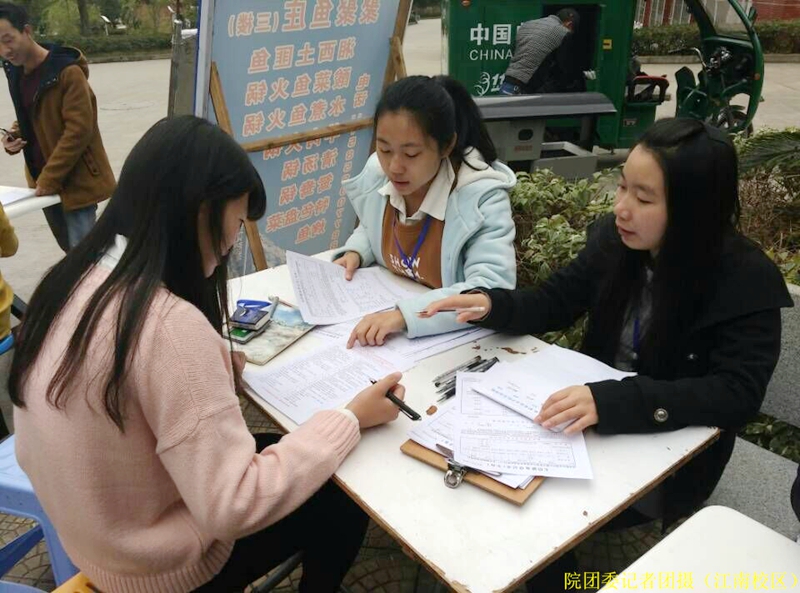 本网讯 为弘扬无私奉献的优良品质,传递正能量。2015年12月15日12时至18时,院团委在江南校区第一食堂门口开展了“奉献爱心,利人利己”无偿献血活动。