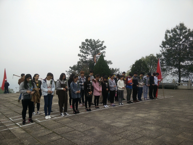 本网讯 2016年清明节来临之际,为缅怀革命前辈激情燃烧的岁月,激发党员、共青团员和大学生们的的爱国热情,加强爱国主义教育,促进大学生精神文明的建设,并引导大学生牢固树立社会主义核心价值观。3月30日上午,林学系两委会组织同学前往九峰山烈士纪念碑开展清明节祭扫活动,大家怀着对革命先烈无比崇敬的心情,在烈士纪念碑前宣誓默哀,并向革命烈士纪念碑鞠躬致敬、献花以表达对革命先烈缅怀之情,现场气氛庄严穆肃。
