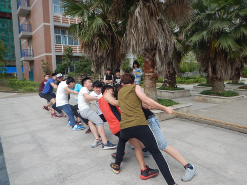 比赛前,运动员们的神经就像比赛的绳子一样,绷得紧紧的,旁边的啦啦队也精神抖擞。随着裁判哨子的吹响,运动员们突然发力,男生个个都涨得面红耳赤,青筋爆粗;女生也毫不示弱,放下了平时的淑女风范,使尽浑身力气,不顾一切地往后拉。各班啦啦队热情高涨,为自己班加油助威。加油声,呐喊声此起彼伏,震耳欲聋,飘荡在宿舍楼之间。同时也吸引了大量呆在宿舍的其他系的学生走出阳台或者走下来人工湖观看,甚至为队员欢呼。活动也吸引了不少老师前来加油助阵,比赛场面真可谓热闹非凡,相当震撼。