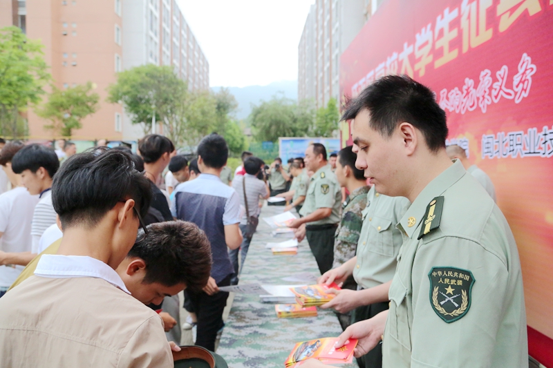 本网讯 为了贯彻全国、全省大学生征兵工作会议精神,广泛动员大学生应征入伍,进一步推动大学生征兵工作的落实,6月15日,2016年延平区高校征兵工作站揭牌仪式暨大学生征兵宣传活动在福建林业职业技术学院江南校区三食堂四楼礼堂举行。学院党委副书记陈洪尧、市征兵办主任、军分区参谋长周建新,延平区政府副区长胡庆雄,闽北职业技术学院党委副书记陶金辉,延平区教育副局长林进,延平区武装部副部长曾华忠,市征兵办动员科科长吴海涛,学生处副处长李霞等嘉宾出席仪式。会议由延平区武装部政委范智文主持。