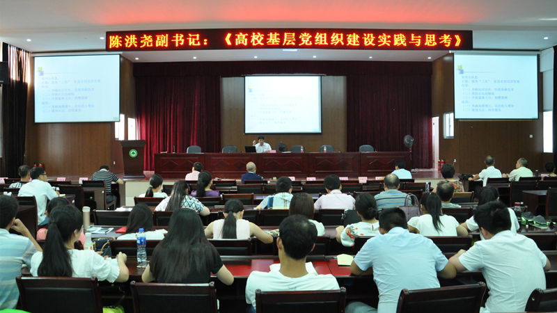 本网讯 为进一步深入开展“两学一做”学习教育,切实加强学院基层党组织建设,激发基层党组织的生机和活力,根据学院党校课程安排, 7月5日下午,学院党委副书记陈洪尧在江南校区礼堂为党校党务干部班、科级干部培训班、辅导员培训班的全体学员作了《高校基层党组织建设的实践与思考》专题讲座。