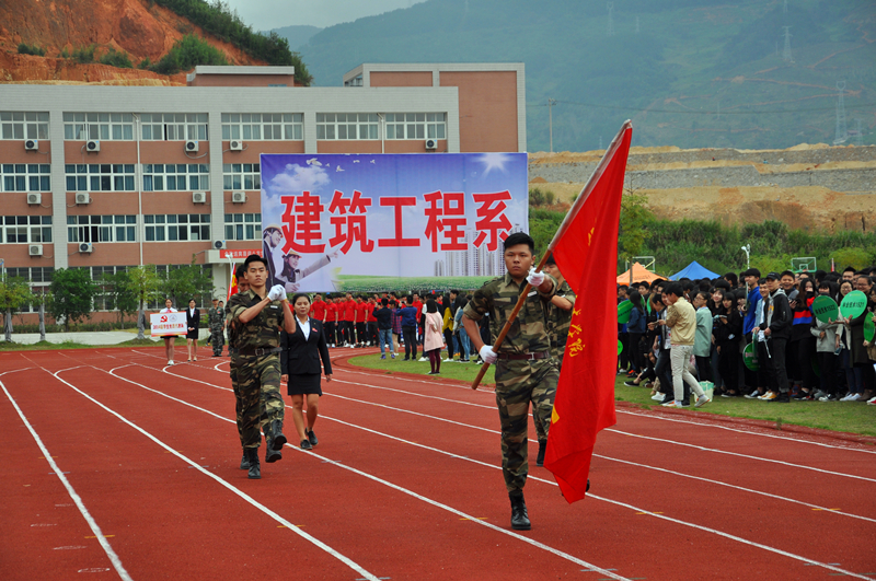8:30,伴随着《运动员进行曲》激昂的旋律,各院系同学以整齐的方阵在国旗队、校旗队的引领下,昂首步入会场。嘹亮的口号彰显出同学们的青春风采和高昂斗志。在庄严的升旗仪式后,章书记致开幕词,他首先代表学院对校运会的召开表示热烈祝贺,对精心筹办运动会的工作人员表示诚挚的感谢。其次,他指出学院举办校运会是全面贯彻党的教育方针全面发展的必然要求,希望广大同学发扬“更快、更高、更强”的奥林匹克精神,并提遵守赛场秩序和规则。随后着党委副书记陈洪尧宣布开幕式开始,李志杰同学代表运动员宣誓,廖世喜老师代表裁判宣誓。