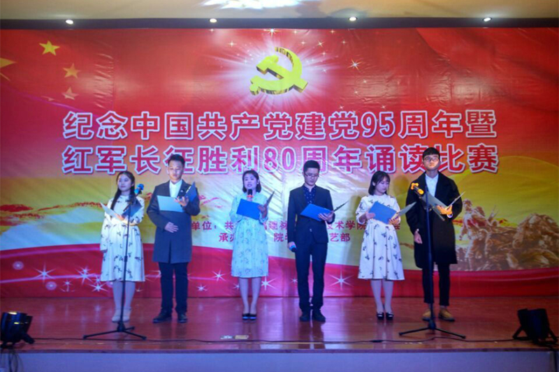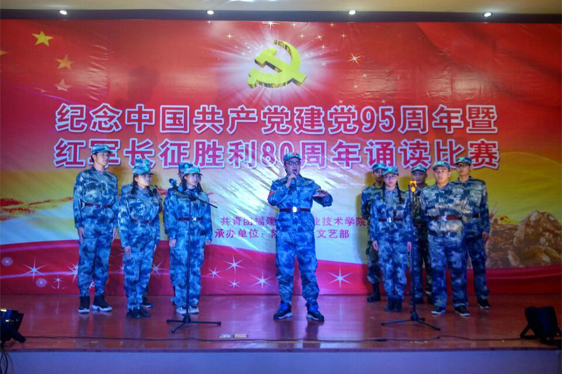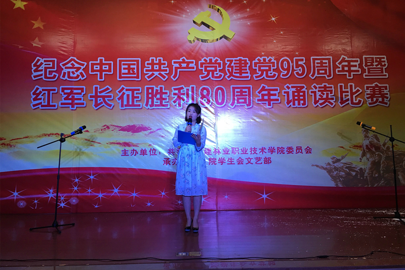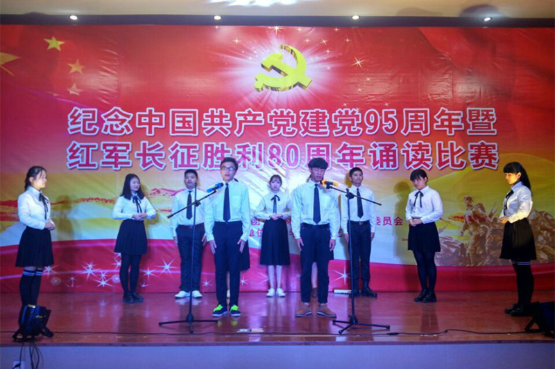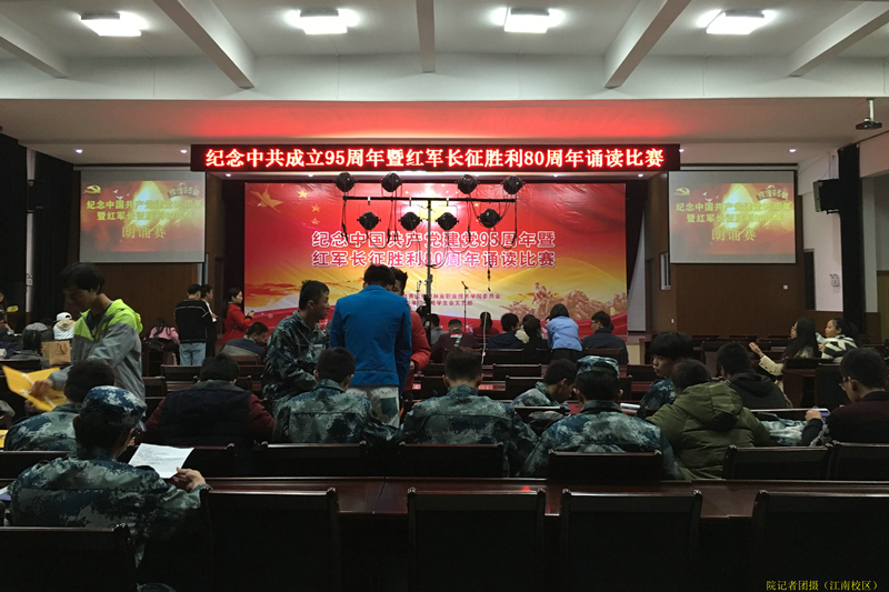 12月8日,院团委在江南校区礼堂隆重举行纪念中国共产党成立95周年暨红军长征胜利80周年诵读比赛。出席此次比赛的有建筑工程系党总支书记王云彪老师、艺术设计系学生科科长杨自绍老师、林学系学生科科长钱叶会老师、团委叶新颖、黄晓宁老师,还有各系学生参赛代表队等约200人。