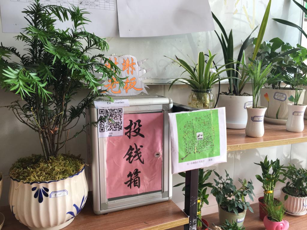 本网讯 在福建林业职业技术学院江南校区公寓楼六号楼有一个小花屋,一年四季绿意昂扬,花香不断。上面的植物明码标价,却无人值守,边上有一个投币箱和可以移动支付的二维码,这就是林学系学生做的诚信花屋。