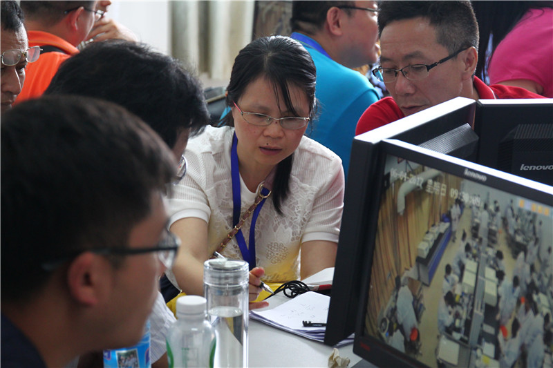 选手们进入比赛,指导老师们在志愿者们的引导下,来到观摩室休息 等待,观看着赛场的情况。
