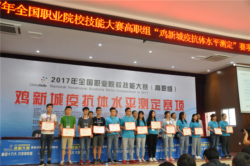 2017年全国职业院校技能大赛(高职组)“鸡新城疫抗体水平检测”赛项至此正式落下帷幕。各位参赛选手在比赛中严格遵守各项赛规赛纪,服从指挥,赛出了水平,赛出了风格,赛出了友谊。此次技能大赛既检阅了职业院校学生的技能水平和培养质量,展示了选手娴熟的技能、良好的素养和奋发的精神。同时,这也是我院首次举办全国职业院校技能大赛。作为该项大赛的协办方,我院将一如既往地支持国家的高职教育发展,为祖国职业教育做出应有的贡献和力量。