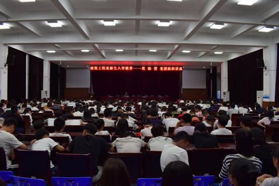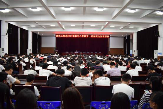 本网讯 为了让新生能够更好的适应大学生活,营造良好的校园环境。建筑工程系于2017年9月18日晚,在江南礼堂为2017级新生开了一堂“建筑工程系新生入学教育——法制安全知识讲座、奖助贷、党团组织讲座”的主题活动。系党总支书记王云彪、专兼职辅导员以及全体2017级新生出席会议,讲座由王云彪书记主持。