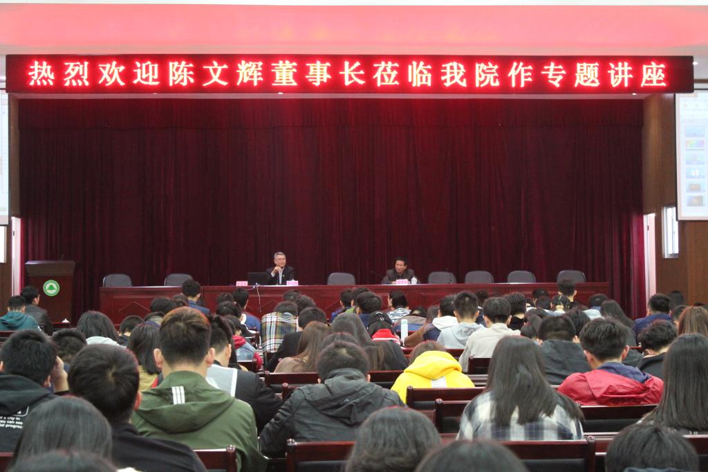 本网讯 为深入学习宣传贯彻党的十九大精神,充分发挥优秀校友典型示范作用,激励学生努力学习、立志成才。3月24日上午,我院邀请杰出校友陈文辉回母校在江南校区礼堂作励志报告。