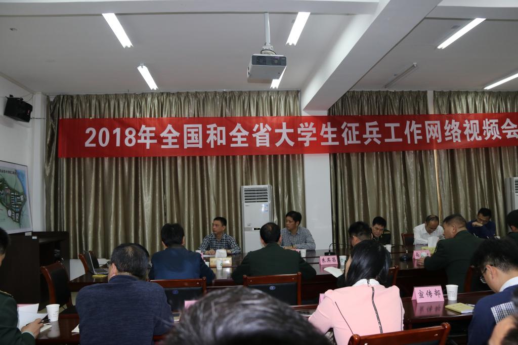 全国征兵工作网络视频会议结束后,省教育厅、省军区召开全省大学生征兵工作网络视频会议,省教育厅及省军区领导对全省大学生征兵工作提出具体要求,并对2017年度全省征兵工作先进单位及个人提出表彰。