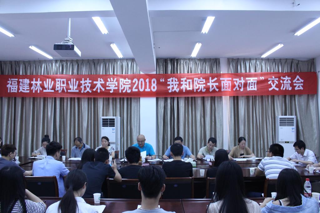 本网讯 为推进现代化大学制度建设,增强学生参与学院民主管理工作的实效性、创新性,引领青年学生投入到学院的发展建设中,构建科学、规范、创新的管理体系,2018年5月8日下午2时40分,学院在江南校区办公楼第一会议室举办2018年福建林业职业技术学院“我和院长面对面”交流会。