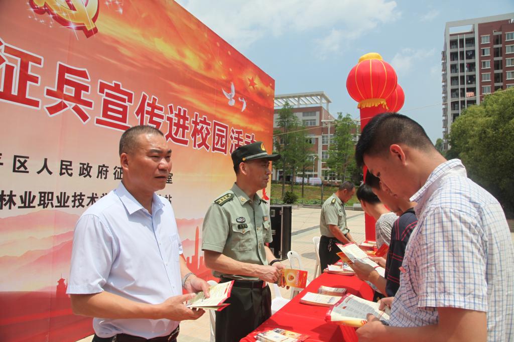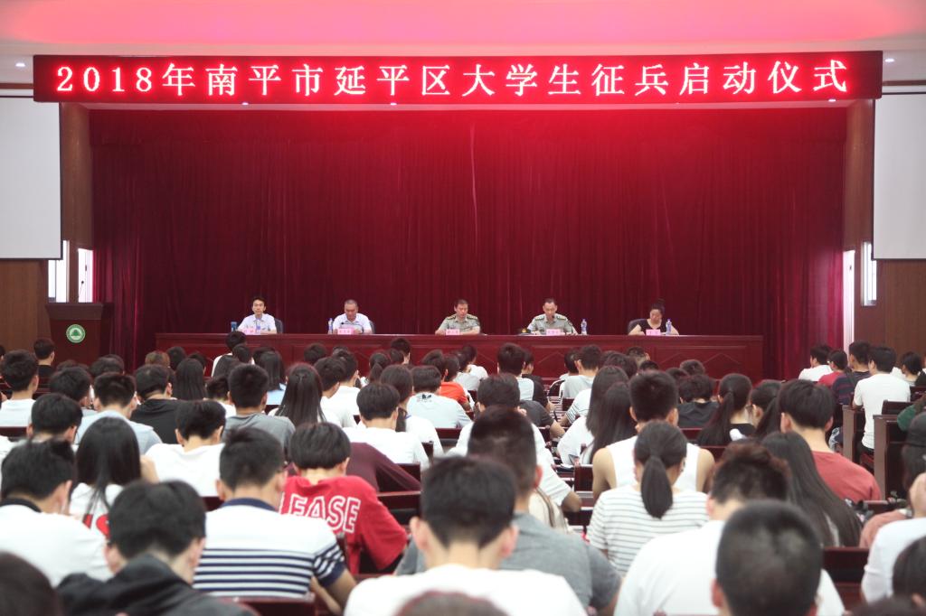本网讯 2018年5月28日上午,2018年南平市延平区大学生征兵启动仪式暨征兵宣传进校园活动在福建林业职业技术学院举行。南平军分区动员处处长赖小平,延平区人武部政委范智文,延平区副区长张道强,闽北职业技术学院学生处副处长刘林,我院学生处副处长李霞等领导出席仪式。各系征兵工作联系人以及应征报名大学生共计300余人参加了仪式。会议由延平区人武部政委范智文主持。