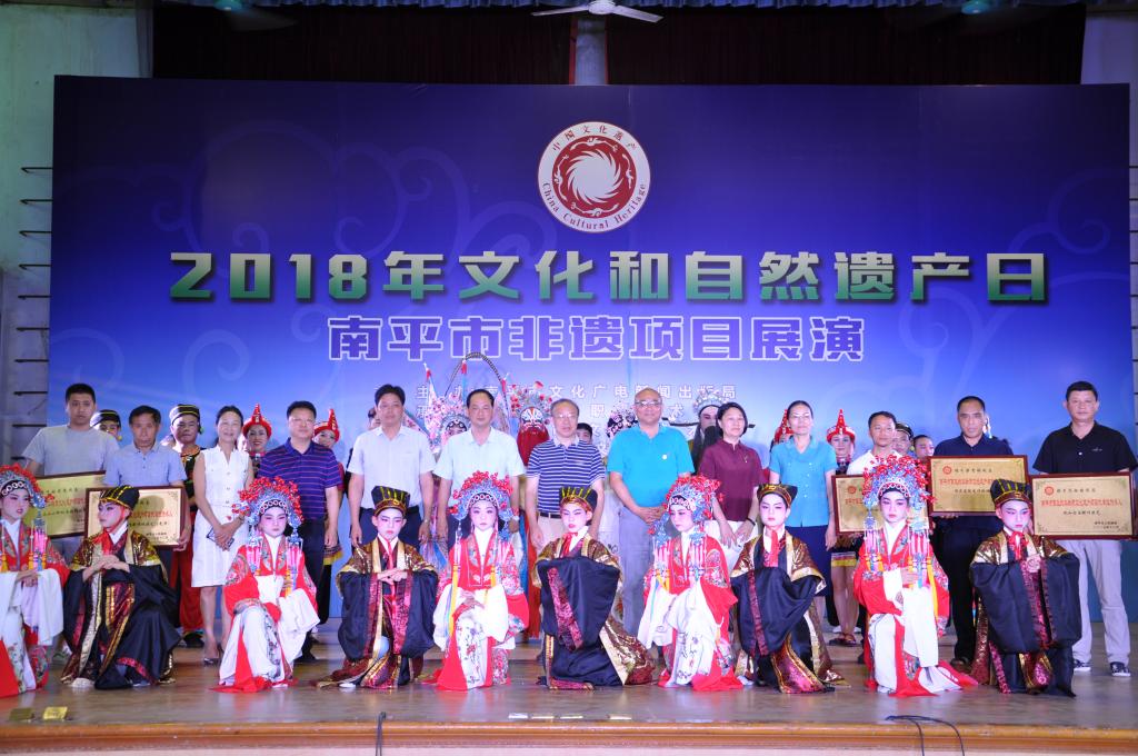 本网讯 2018年6月9日是我国第二个“文化和自然遗产日”,由南平市文化广电新闻出版局主办,福建林业职业技术学院、南平市非物质文化遗产保护中心等承办的“2018年南平市文化遗产进校园活动”在我校天麟校区顺利开展。南平市政协副主席陈少敏、福建林职院院长万泉、南平市委宣传部副部长陈金健、南平市文广局局长谢秀端、福建林职院党委副书记陈洪尧等出席展演活动,天麟校区300余名学子、部分教师共同观演。