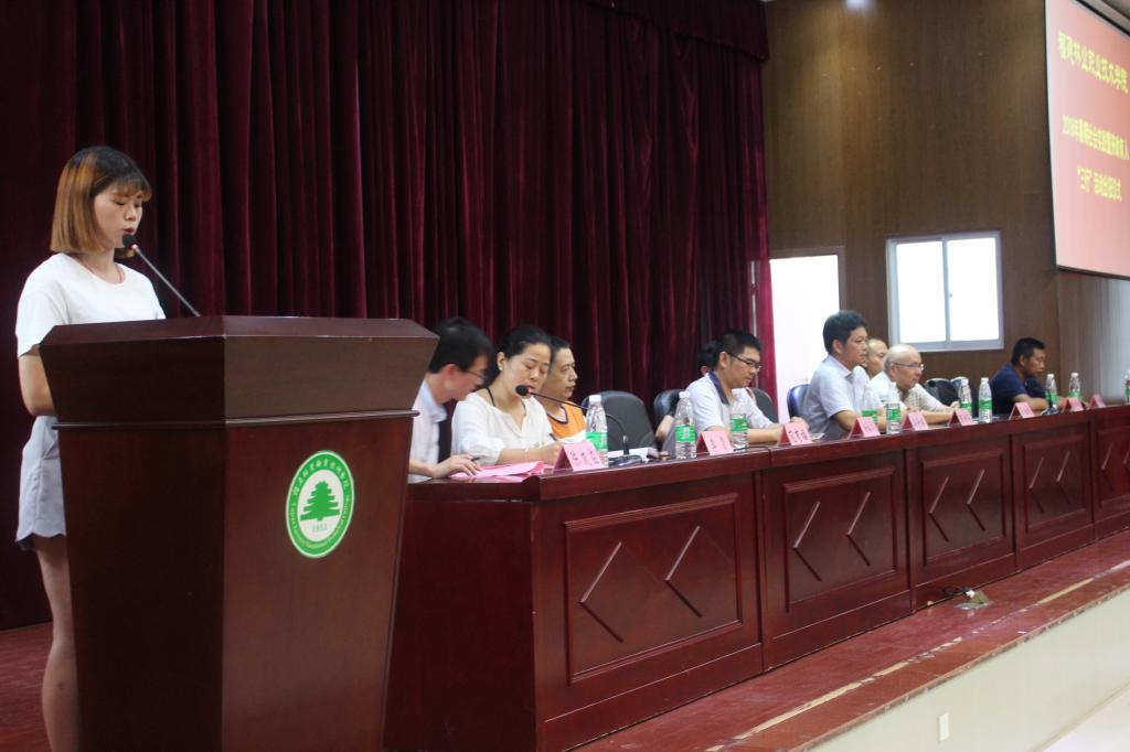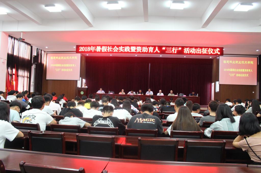 本网讯 2018年7月12日下午四点半,福建林业职业技术学院2018年暑期社会实践暨资助育人“三行”活动出征仪式在江南校区礼堂隆重举行。院党委副书记陈洪尧,学生处副处长、团委副书记李霞及各系学工组长、副组长应邀到会。2018年暑期社会实践团成员及指导老师约150人参会。大会由团委办公室主任陈友益主持。