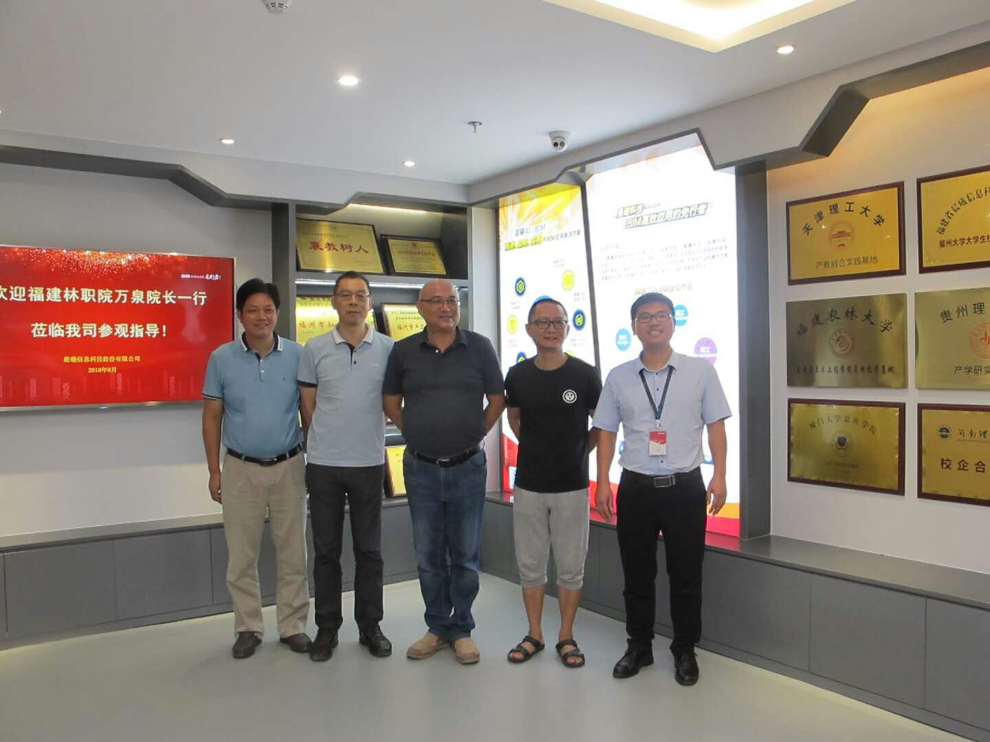 本网讯 2018年8月20日下午,万泉院长、陈洪尧副书记、交通系孙华到福建林业职业技术学院校企深度合作企业福建晨曦信息科技股份有限公司进行了实地考查。