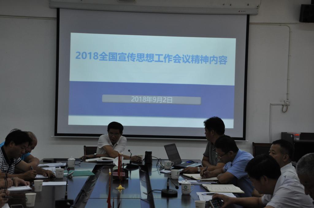 随后,院党委副书记陈洪尧就全国宣传思想工作会议精神做了重点发言,详细解读了习近平同志对进入新时代,如何做好宣传思想工作提出的新要求。即一个中心环节,五项使命任务,一个战略任务,一项重要职责,三个“不”,广大文化文艺工作者四个“讴歌”、四个“观”、三个“讲”,讲好三个“故事”,宣传思想干部要求三个“新”、四个“力”。徐书记重点解读了全国宣传思想会议上提出的15字五项使命任务,并结合学院宣传工作,要求大家深刻认识新形势下宣传思想工作的重点工作,做好新闻宣传工作,讲好我们的故事,展现好我们的形象。