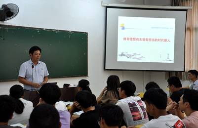 9月17日上午8:10,院党委副书记陈洪尧在江南校区实训四710,以“做有理想有本领有担当的时代新人”为主题,围绕大家为什么来、大学生活准备怎么过、三年后将何去何从等三个方面,为2018级新生上了一堂鲜活生动的思想政治理论课。陈副书记与2018级新生分享了自己对学习、生活、奋斗的人生感悟,希望同学们尽快融入大学,进一步激发拼搏向上的动力,力争成为德智体美劳全面发展的社会主义建设者和接班人。讲课过程中,陈副书记多次与同学们亲切互动,他既深刻又真诚的话语引起了大家的共鸣,精彩处掌声不断,气氛融洽活跃。