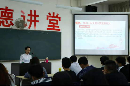 讲座伊始,朱丽云老师以歌曲《没有共产党就没有新中国》开场,介绍了中共十九大的召开背景、主题和意义。引出新时代、新征程的时代内涵。同时,朱老师指出 从十九大到二十大,是“两个一百年”奋斗目标的历史交汇期,这个历史交汇期对于我国社会主义现代化进程有着特殊重要的意义。在这5年的时间里,第一个百年奋斗目标要实现,第二个百年奋斗目标要开篇。同时,朱老师在宣讲时对青年学生提出殷切希望。她指出,习近平总书记对青年发展十分重视、对青年成长十分关心。希望同学们积极投身新时代中国特色社会主义伟大实践,争做有理想、有本领、有担当的新时代优秀青年。要坚定维护习近平总书记的核心领导地位、领袖权威,矢志不渝听党话、跟党走。要坚定信仰信念,自觉把个人理想融入祖国伟大梦想,展现自我个性,实现人生价值。要坚定扛起新使命新担当,把专业知识学习与自身发展相结合,在新征程上抓牢机遇、筑梦于心,争做新时代的弄潮儿。