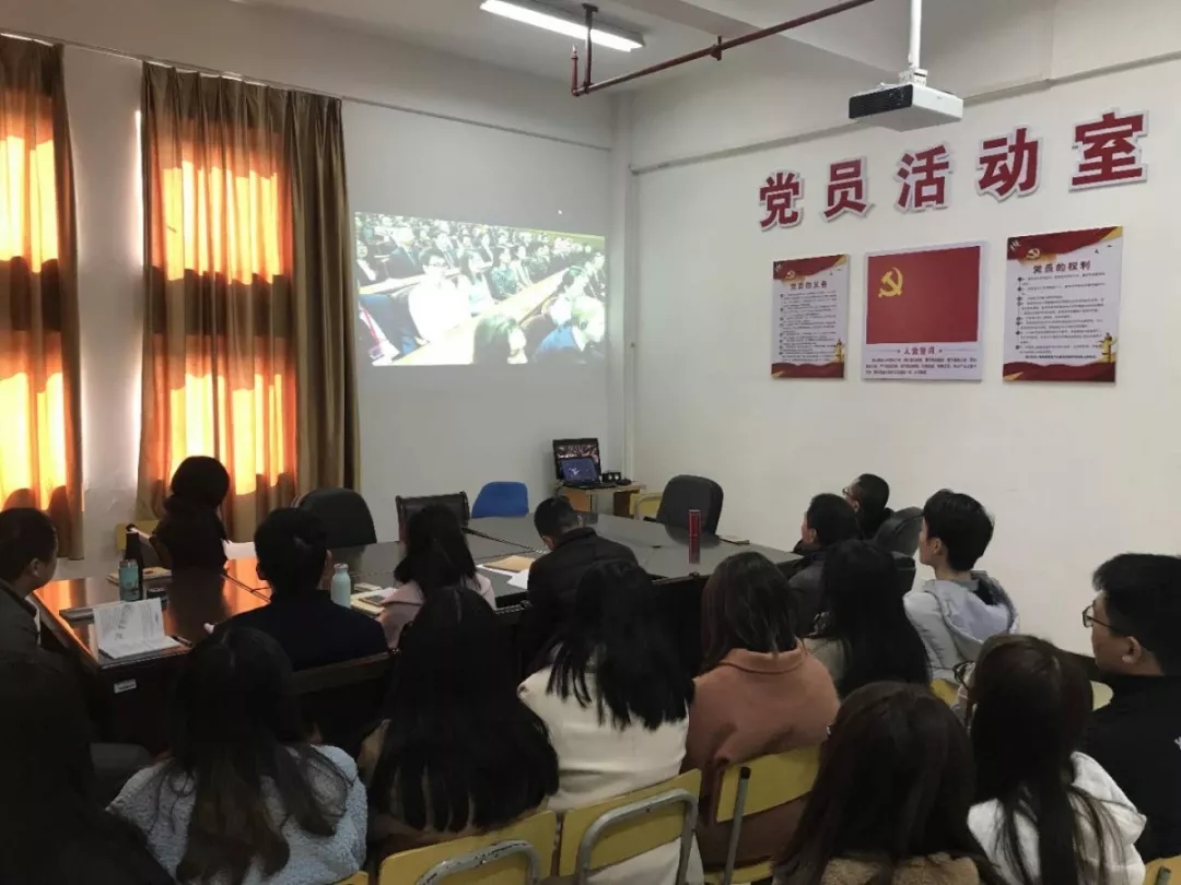 院领导、全体行政工作人员在江南校区办公楼第一会议室集体观看直播,各系组织师生在各系党建活动室、学生宿舍集体观看直播。我们如同就在人民大会堂会场一般,当庄严的国歌昂扬响起,抚今追昔,回顾改革开放40周年中国腾飞的历程,内心感到无比的骄傲、自豪。