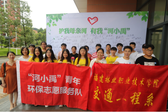 仪式上,我院严绍裕副院长及南平市环保志愿者协会林烈明会长先后致辞;南平市河长制办公室专职副主任黄春与我院交通工程系党总支李肇锋书记举行了《志愿基地共建协议》签约仪式;共青团南平市委张田怡副书记为“护我母亲河, 有我河小禹”青年环保志愿服务队授旗;在学生代表张敏同学表态发言后,严绍裕副院长宣布:“2019年暑期社会实践“护我母亲河, 有我河小禹”环保公益行活动正式启动”!