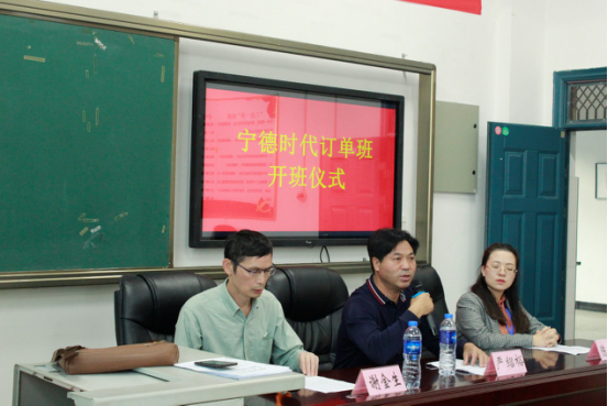 开班仪式上,严绍裕副院长首先致辞。他对学院和宁德时代的成功签约表示由衷的祝贺,指出订单班的开班展现了学院在办学实践中始终坚持开拓创新,形成鲜明的办学特色。严副院长通过访查总结了宁德时代技术、业绩、环境三大特色及宁德时代的发展潜能,勉励全体学生学好专业知识,历练成为宁德时代人。