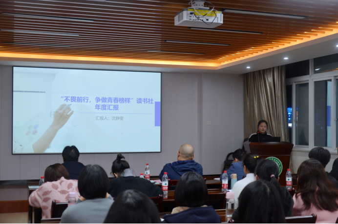 在第二期“读书社”成果汇报会上,邹文涛、沈静雯、林远妹、李涛、穆亚平、张思瑾等六位学生代表结合本年度的学习感悟分别以“新学期 新起点”、“不畏困难 争做青春榜样”、“深刻学习领会习近平新时代中国特色社会主义思想 争做不负中国志的少年郎”、“马克思与中国青年的新时代使命”、“守得初心 继续前行”、“马克思主义的当代价值”为题作了成果汇报。