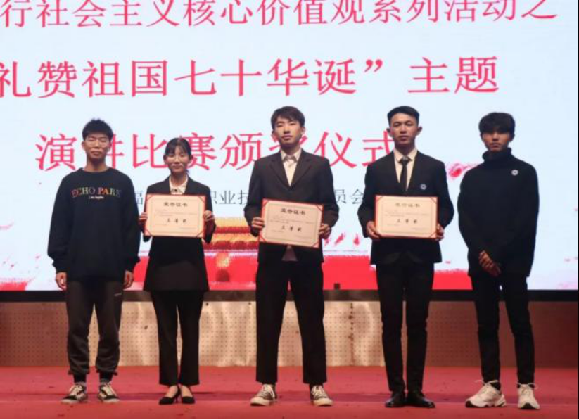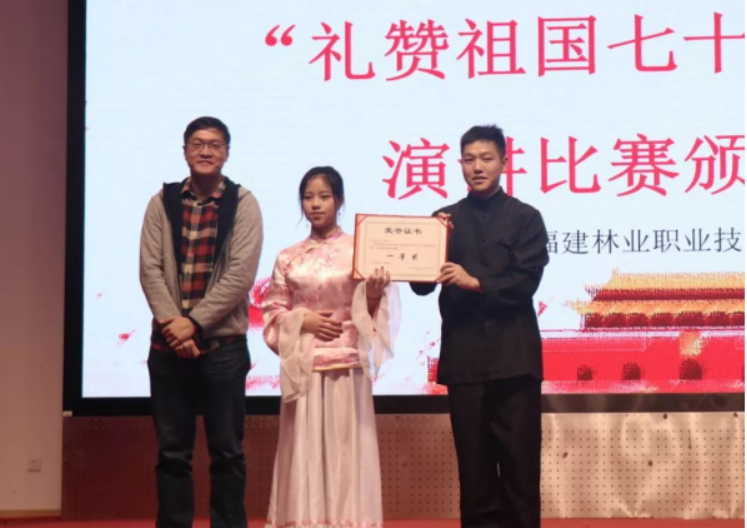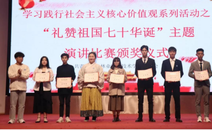本网讯 礼赞新中国,奋进新时代,七十年风雨兼程,七十年砥砺奋进。为增强青年大学生语言表达能力,营造爱国、爱校的校园文化氛围,引领学生勇立时代潮头,献礼祖国70周年华诞,12月15日下午,由福建林业技术学院共青团委员会发起举办的学习践行社会主义核心价值观系列活动之“礼赞祖国七十华诞”主题大学生演讲比赛决赛在天麟校区礼堂举行。此次比赛特别邀请了经管系王昉老师以及天麟院两委会学生干部等人出席。