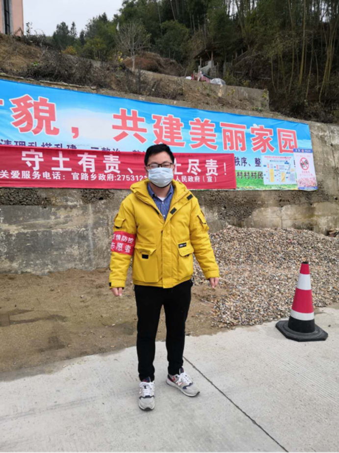 学生志愿者武凌颖、王炳辉、罗漳彬、王汉强、罗煌璋、林亿权、张宇宏、郑岳丰、周胜龙等在疫情防控关键时刻勇于担当,挺身而出,主动请缨报名参加家乡疫情防控工作,在所在地出入口设卡点值班协助开展体温检测、访问登记、车辆排查、劝返聚集人员、张贴防疫宣传标语等防控基础工作。用实际行动响应号召,为早日打赢疫情防控阻击战贡献青春力量。