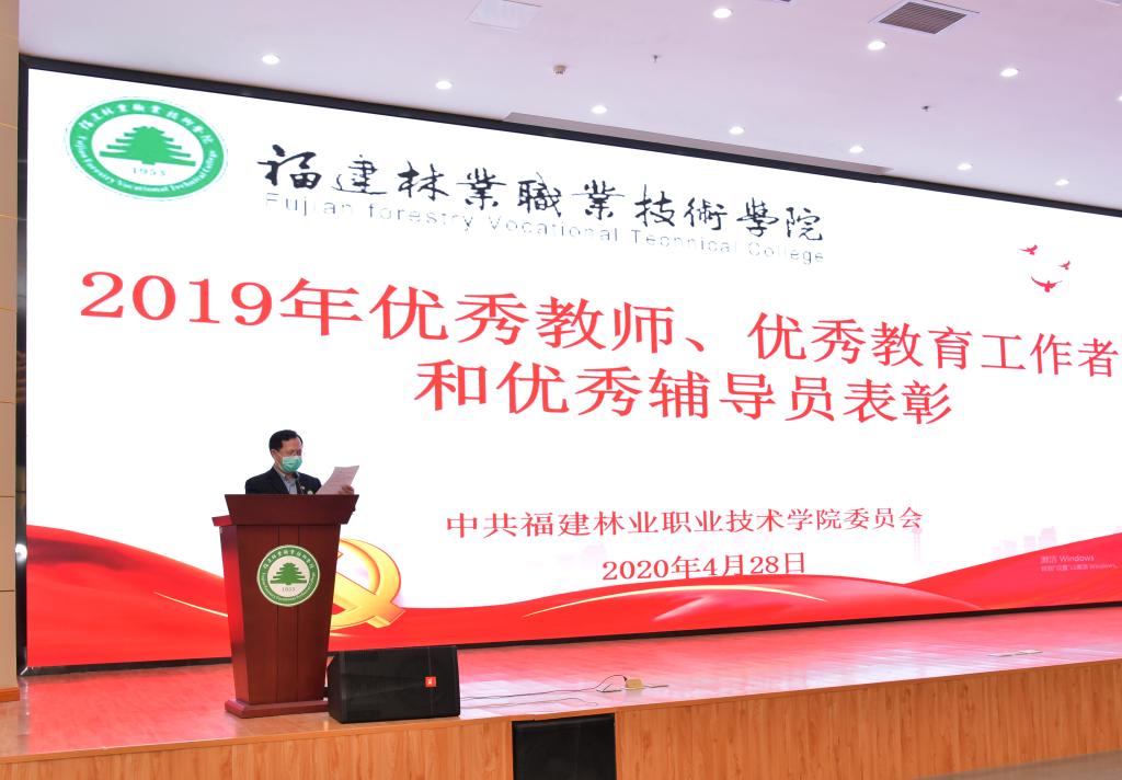 院纪委书记林建斌宣读了《关于表彰2019年优秀教师、优秀教育工作者和优秀辅导员的决定》,公布了孔祥云、刘少彦、孙华、杜彩银、连颖、应兴亮、宋李玉、张良英、张新民、陆梅、陈毅勇、陈燕、林文胜、官飞、胡静婷、袁玲、高蓉、唐必成、黄淑燕、傅成杰、蔡尊煌、廖坤阳、黎文娥等老师荣获“优秀教师”称号;陈元镇、郭智华、黄庆斌、黄丽霞、黄建西、黄晓宁、谢冰、魏长专等老师荣获“优秀教育工作者”称号;叶文美、罗勇、温全军等老师荣获“优秀辅导员”称号。林建斌书记,副院长罗立仪、叶世森、谢金生分别为获奖老师颁发证书。
