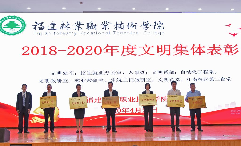 随后,进行文明集体、防疫先进个人及2019年优秀教师、优秀教育工作者和优秀辅导员表彰。院长刘文开宣读了《关于表彰2018-2020年度文明处室、文明系部、文明教研室、文明食堂的决定》,公布了人事处、招生就业办公室(排名不分先后)荣获“文明处室”称号;自动化工程系荣获“文明系部”称号;林业教研室、建筑工程教研室(排名不分先后)荣获“文明教研室”称号;江南校区第二食堂荣获“文明食堂”称号,并向受到表彰的文明集体颁发奖牌。