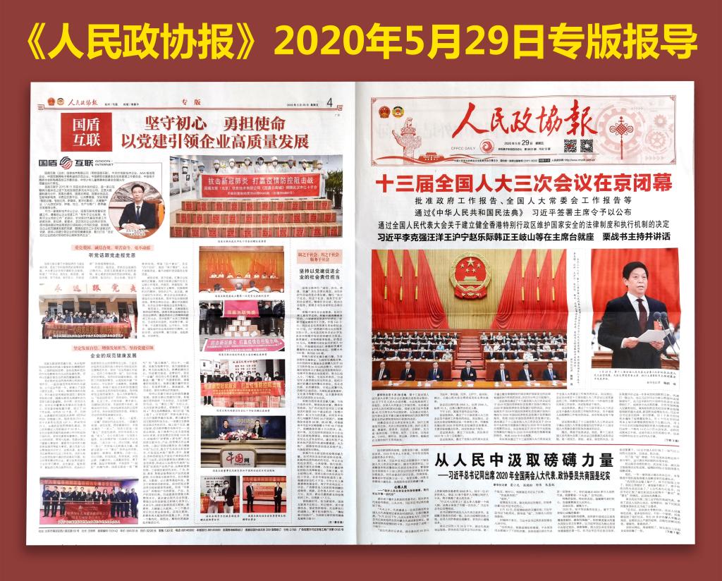 图为《人民政协报》专版报道国盾互联《坚守初心 勇担使命 以党建引领企业高质量发展》