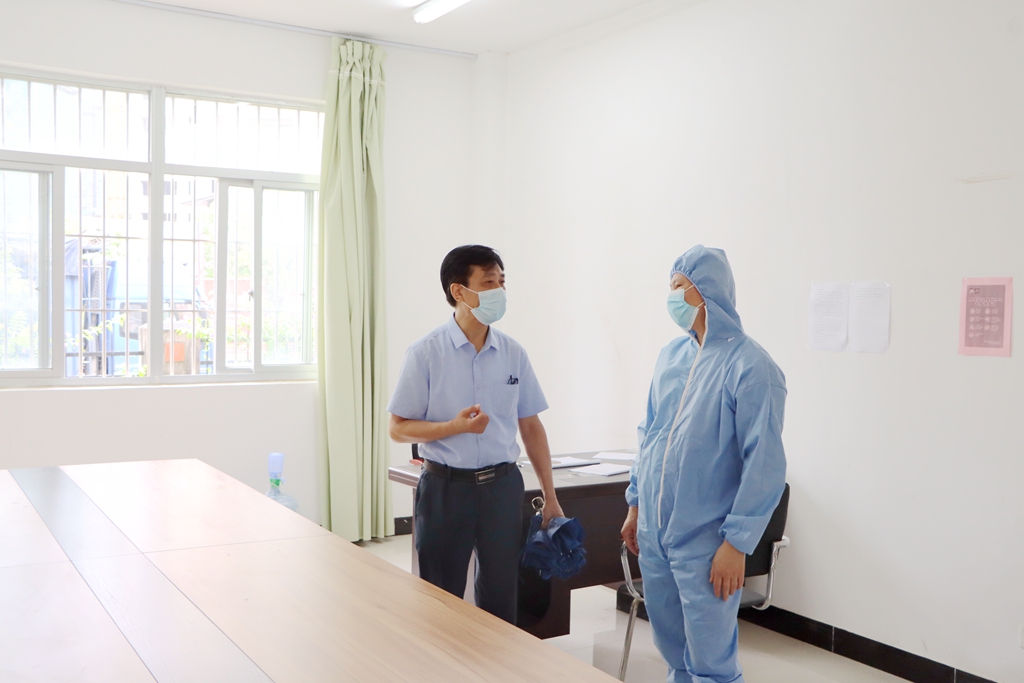 督导组入校后,重点现场检查了学院临时隔离区、防疫物资储存点、学生宿舍、图书馆以及校园环境等重点场所、关键部位。督导组一边检查,一边询问返校人员健康管理、人员条件保障、应急处置流程、教职员工和学生的核酸检测、校园消杀及联防联控机制建立等方面工作情况。刘文开院长、谢金生副院长就学院学生返校复学以来的各项工作运行情况进行一一详细汇报,表示学院将持续抓严抓实常态化疫情防控工作,抓牢抓实重点防控环节和场所,保证常态化疫情防控和学生返校复学等各项工作有效运行,确保全院师生员工的生命安全和身心健康。