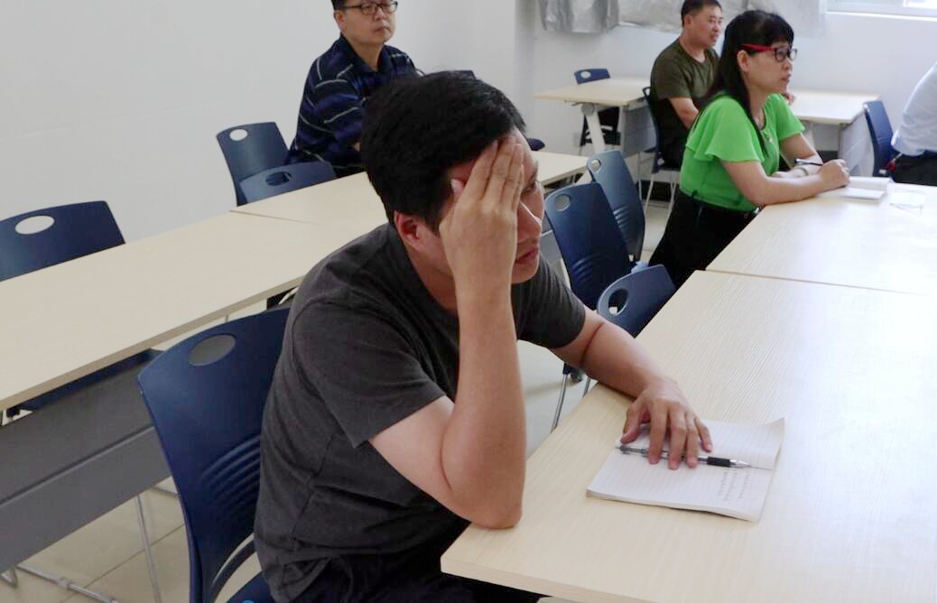 ▲学生隔列就坐,教师上课