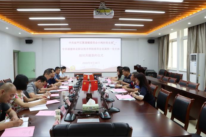 本网讯 为坚持以习近平新时代中国特色社会主义思想为引领,大力推进高校与农村基层党组织工作方式和活动方式创新,增强党员干部的宗旨意识,进一步改变工作作风,促进学校、农村社会和谐发展,努力实现“党员干部受教育、校村支部共促进、科学发展见成效”的工作目标,2020年9月18日,学院直属第一党支部按照“村校共建、双向受益、共同提高”的要求,与夏道镇小鸠村党支部举行结对共建仪式。直属第一党支部与小鸠村党支部党员参加会议。