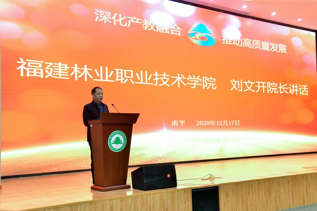 刘文开院长以“深化产教融合 推动高质量发展”为主题,向与会人员汇报了福建林业职业技术学院办学概况,并从创新办学体制机制,实现校企协同育人;校企共建职教集团,提升集团化办学成效;共建特色产业学院,推进教育链产业链深度融合;共建协同创新中心,探索“产学研用”协同育人;共建产教融合基地,创新校企双主体育人新模式等五个方面总结了理事会和职教集团工作成效。他指出,下一步理事会和职教集团需重点突破的工作是:一要健全德技并修校企双主体协同育人机制,大力推行校企双主体育人模式,优化完善“政行校企”办学机制与“八共同”运行机制,形成校企协同培养技术技能人才长效机制;二要探索产教融合型企业试点,围绕福建省双高院校建设和学院一系一品重点专业、7个专业群建设,精准对接相关产业,努力培育3-5个省级产教融合型企业,共建1个省级示范性产业学院;三要拓宽校企合作方式,形成校企融合发展格局,拓宽校企合作方式,深化校企合作内涵,培养企业需要的人才,提高毕业生就业竞争力。