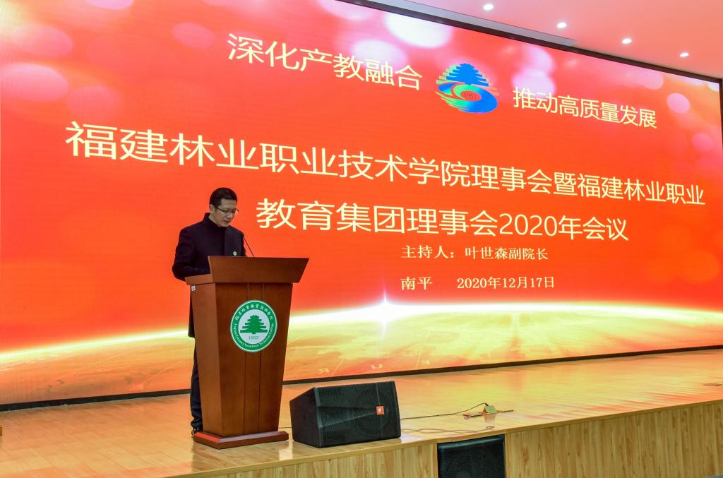 据悉,福建林业职业技术学院于2013年6月成立了以学院为龙头的契约型“福建省林业职业教育集团”和理事会,制订了理事会和职教集团章程,明确合作各方的职能,集团内校企在共建行业特色专业、共设专业课程体系、共同开发核心课程、共建先进实训基地、共培新型双师队伍、共育技术技能人才、共享教育信息资源、共研应用技术项目等方面进行有益的探索,形成“政、行、校、企”四位一体的合作模式。福建林业职业技术学院理事会暨福建林业职业教育集团理事会2020年会议是学院认真贯彻落实《国家职业教育改革实施方案》、《职业教育提质培优行动计划》之际召开的一次十分重要的会议。2020年,学院理事会在推进学院治理,校企合作发挥了重要的作用,福建林业职教集团在推进中高职衔接,集团化办学、产教融合,专业建设、人才培养模式改革、实训基地建设等方面取得了优异的成绩。2021年学院将以福建林业职业技术学院理事会、福建林业职业教育集团理事会这两个平台为依托,加强“政行校企”合作,全面深化产教融合,互促互进,共同促进行业、企业、高职、中职协同发展,推动高质量发展超越!