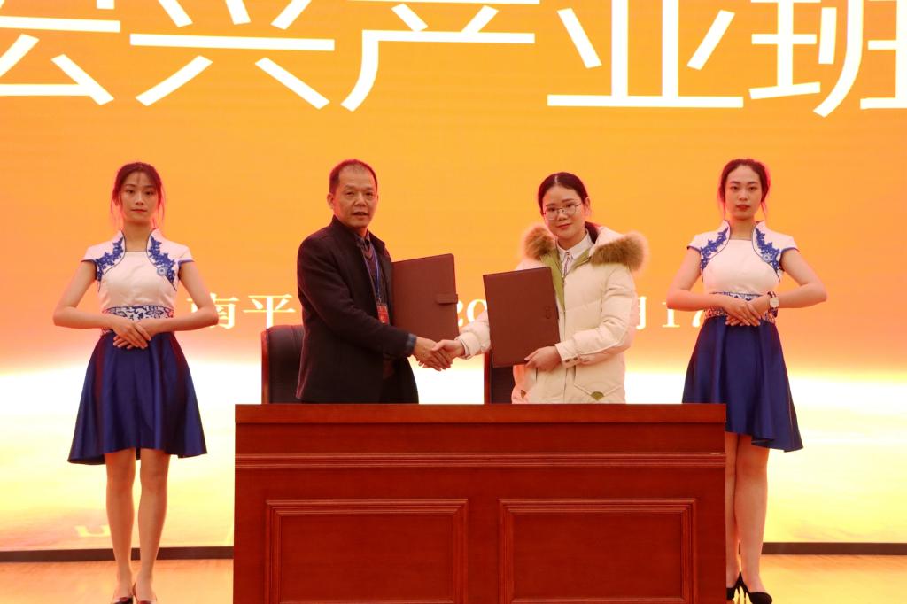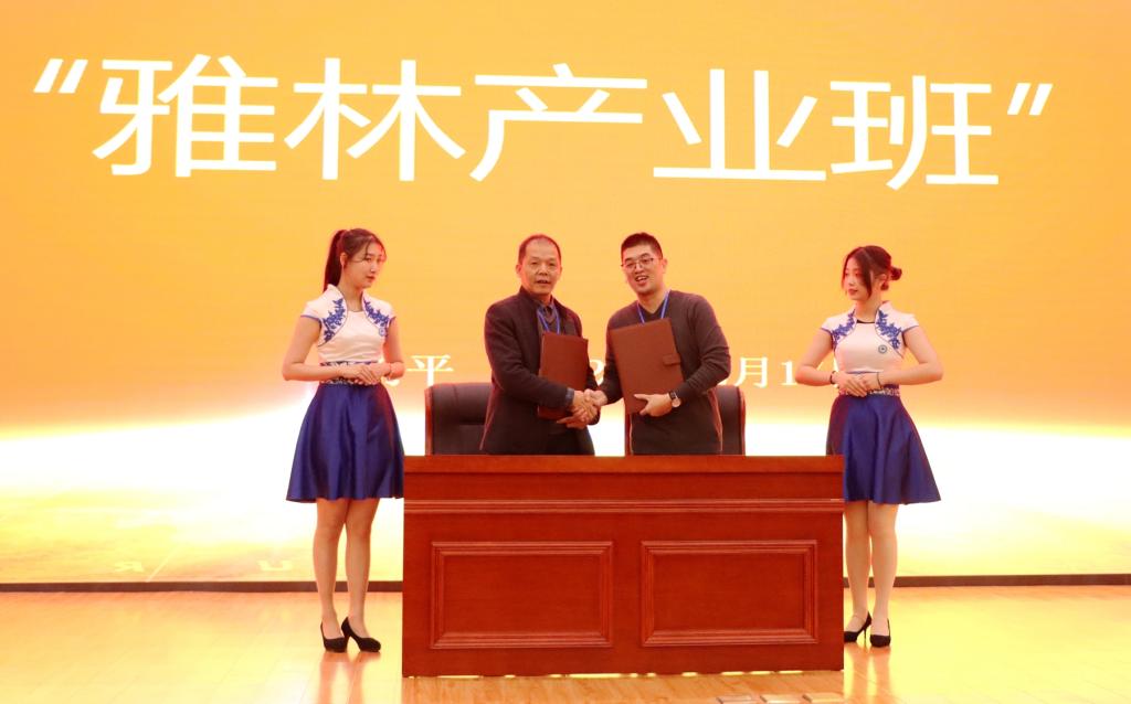 随后,刘文开院长分别与福建省雅林建设集团人事总经理鲍浩辉、宏兴财税服务集团区域经理姚育红进行“雅林产业班”“宏兴产业班”签约仪式。