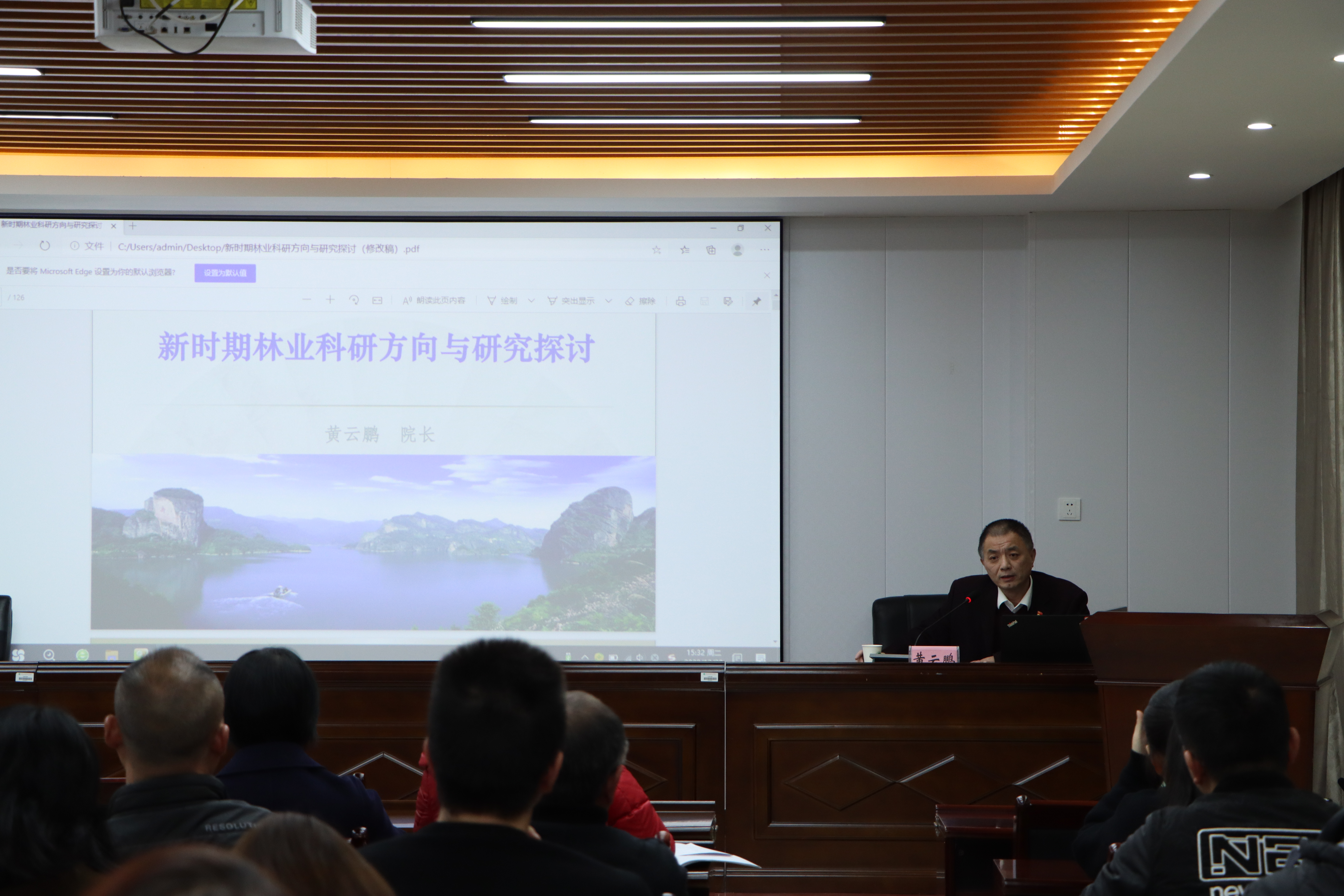 最后,黄云鹏院长以“新时期林业科研方向与研究探讨”为题为与会人员作了专题讲座。会前,黄院长一行还参观了林职院森林生态馆、林业智慧教室、无人机实训室等。