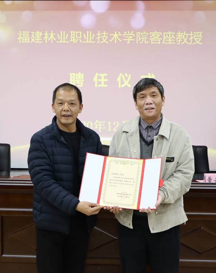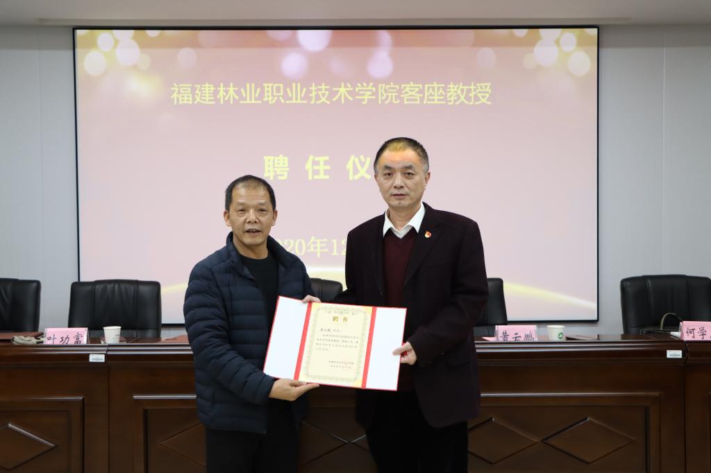 签约仪式后,刘文开院长为省林科院授牌“科教融合基地”,并聘任黄云鹏院长、叶功富副院长、何学友所长等7名教授级高工为客座教授。
