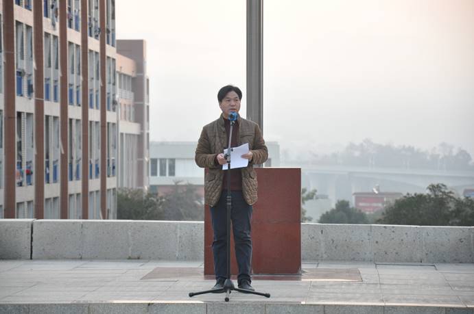 庄严的升旗仪式后,院党委副书记严绍裕作了本学期最后一次国旗下讲话。他代表学院党委对过去一学期里学院取得的成绩作了总结,对我院各项教育事业取得的可喜成绩表示感谢,并鼓励大家为实现自身价值和发展目标而奋力拼搏。随后,严副书记围绕期末离校工作、期末及寒假期间疫情防控工作、下学期开学初各项工作等作了全面的安排部署。