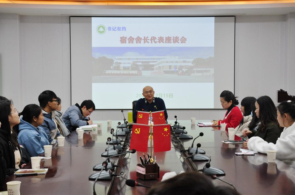 12月15日,万泉书记主持召开宿舍舍长代表座谈会,学院30个宿舍舍长代表参加。同学们畅所欲言,对学院的宿舍管理提出意见建议,并分享了各自在协调舍友关系等方面好的做法及目前遇到的困惑。比如来自江南校区6407的舍长王文洁同学就分享了她在处理舍友关系时的小妙招:“大家住在一起有矛盾很正常,重要的是彼此间相互尊重,要多协调,不要憋在心里,小问题一定要及时解决。”在与学生的交流中,万泉书记指出,学院管理最基本的单位就是宿舍,大家来自天南地北,因为天麟走到一起,共同度过大学三年时光,大家要倍感珍惜这份同学情。大学期间他当了四年的舍长,舍长是勤奋学习、大公无私的表率,将宿舍建成标杆,服务舍友的同时锻炼自己。他感谢舍长为学校、为班级、为宿舍的付出,作为一舍之长,他向舍长们提出要求:一要做表率,提升人格魅力,严格要求自己;二要做服务,服务别人,锻炼自己;三是做桥梁,做好舍友与班级与学校的桥梁,做好上传下达的工作。