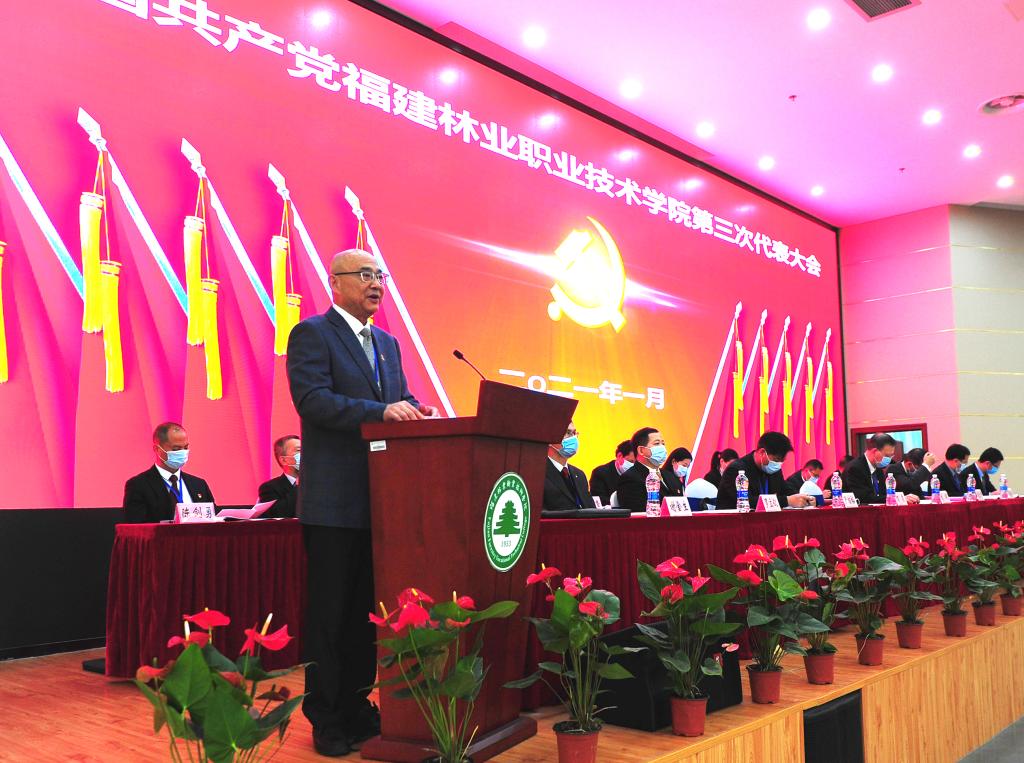 万泉同志代表中共福建林业职业技术学院委员会作题为《攻坚克难 砥砺前行 为加快建设高水平福建林业职业技术学院而努力奋斗》的工作报告。