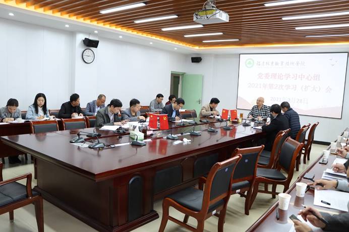 本网讯 2021年2月28日下午,按照院党委部署安排,院党委书记万泉在江南校区办公楼5层第一会议室主持召开2021年第2次党委理论学习中心组学习(扩大)会议。党委领导班子成员,党政办、组织部、宣传部、纪委办负责人,各系党总支书记、直属党支部书记参加学习。