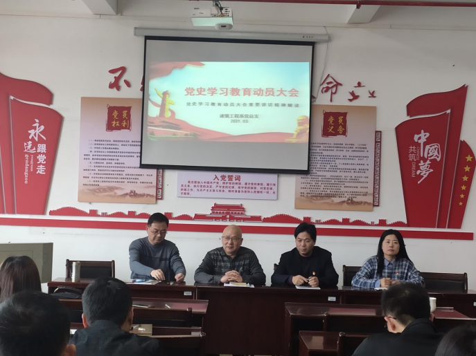 本网讯 3月23日下午,建筑工程系党史学习教育暨“再学习、再调研、再落实”活动部署动员大会在实训一5楼党建活动室举行。会议贯彻落实习近平总书记在党史学习教育动员大会上的重要讲话精神,按照省委、省委教育工委部署和学院党委要求,动员全系党员和全体师生广泛开展党史学习教育和“再学习、再调研、再落实”活动。院党委副书记严绍裕、院组织部部长李霞出席大会,建筑工程系党总支书记王云彪、系主任彭忠伟及建筑工程系全体教职工参加会议。会议由王云彪主持。